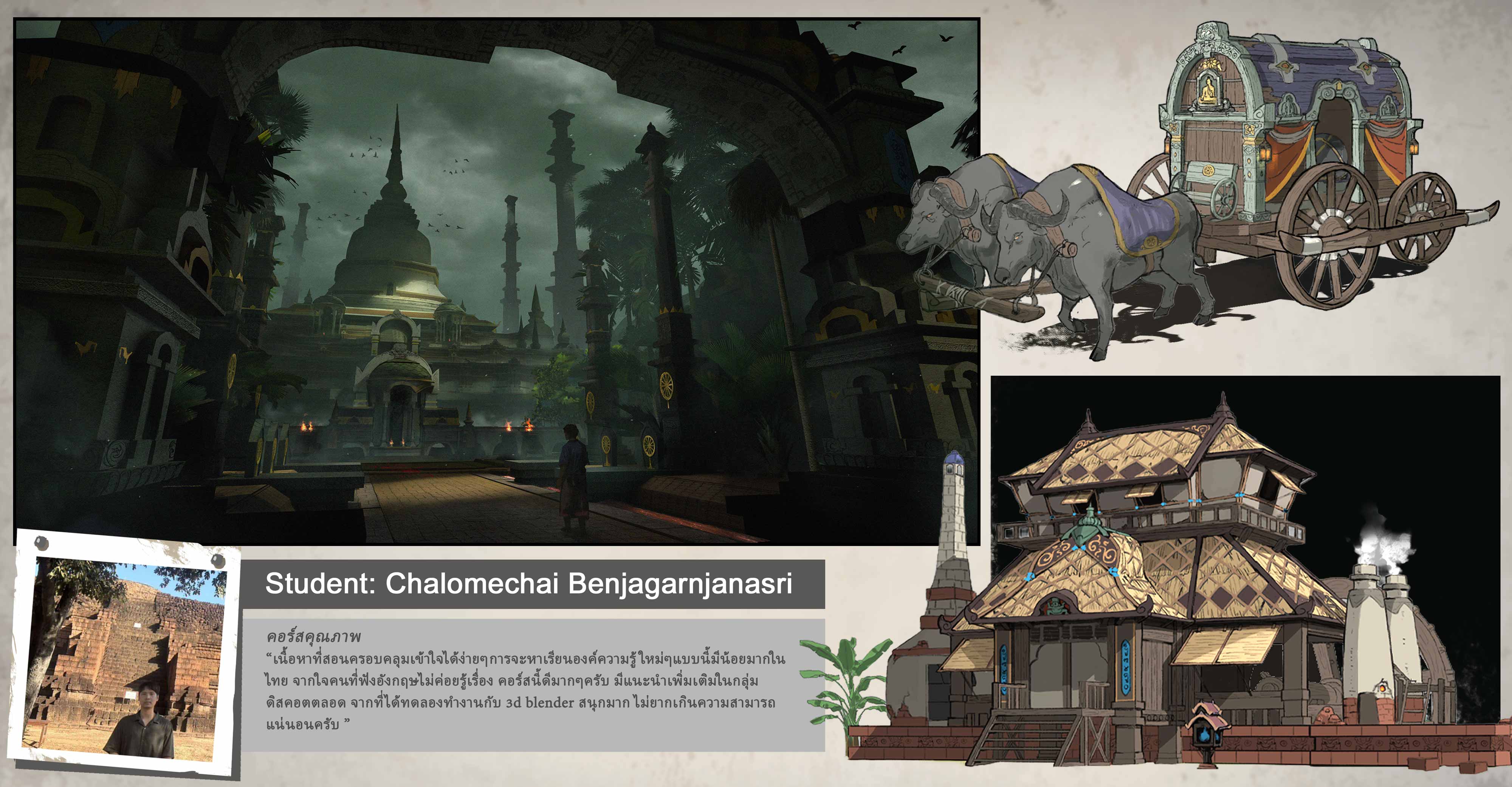เรียนรู้แนวคิดและกระบวนการออกแบบอาคารสถาปัตยกรรมและสภาพแวดล้อมสำหรับงาน Environment Concept Art เพื่อพัฒนาผู้ที่มีพื้นฐานการวาดภาพ 2D สามารถนำโปรแกรม 3D อย่าง Blender มาเสริมประสิทธิภาพ Workflow ของตัวเองอย่างเป็นขั้นตอนในการสร้างโลกและฉากของตนเองให้สมบูรณ์ยิ่งขึ้น