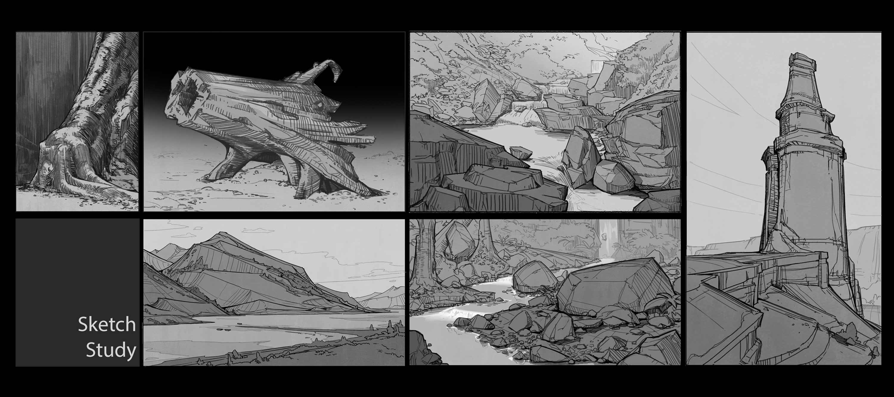 การใช้ Reference และการวาดวัตถุต่างๆ ทั้งสถาปัตยกรรมและวัตถุต่างๆในธรรมชาติ เช่น หิน หน้าผา ต้นไม้ ฯลฯ ให้สวยงาม ไม่เป็นแค่การลอกให้เหมือนภาพถ่าย