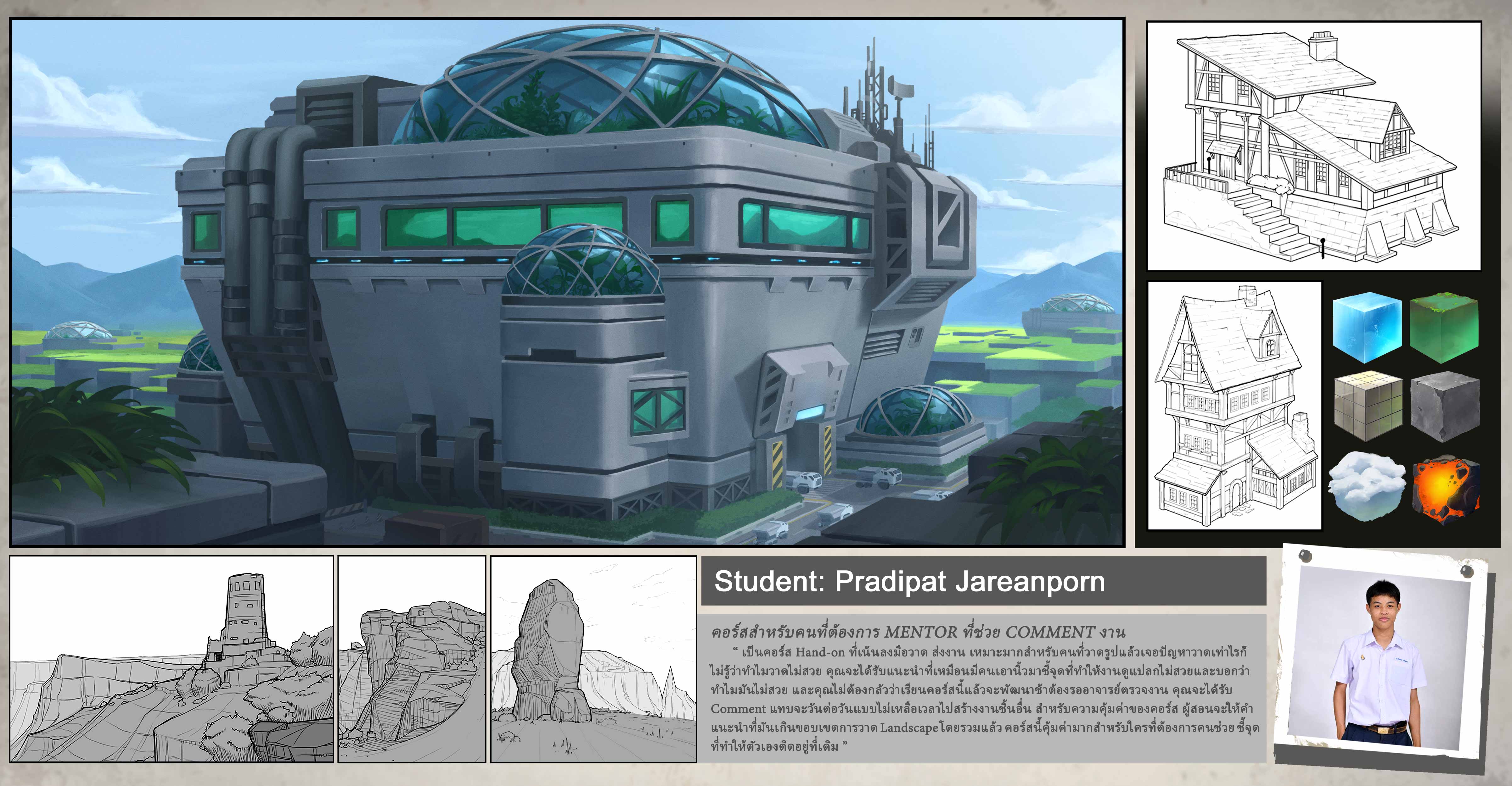 เรียนรู้แนวคิด และกระบวนการสร้างภาพ Landscape สำหรับงาน Illustration โดยสอนตั้งแต่พื้นฐานการวาด มุมมองเชิงทัศนียภาพแบบ Perspective เทคนิคการใช้สีเพื่อสร้างพื้นผิวให้สมจริง รวมทั้งหลักการจัดองค์ประกอบภาพที่สามารถประยุกต์ได้กับทุกสไตล์